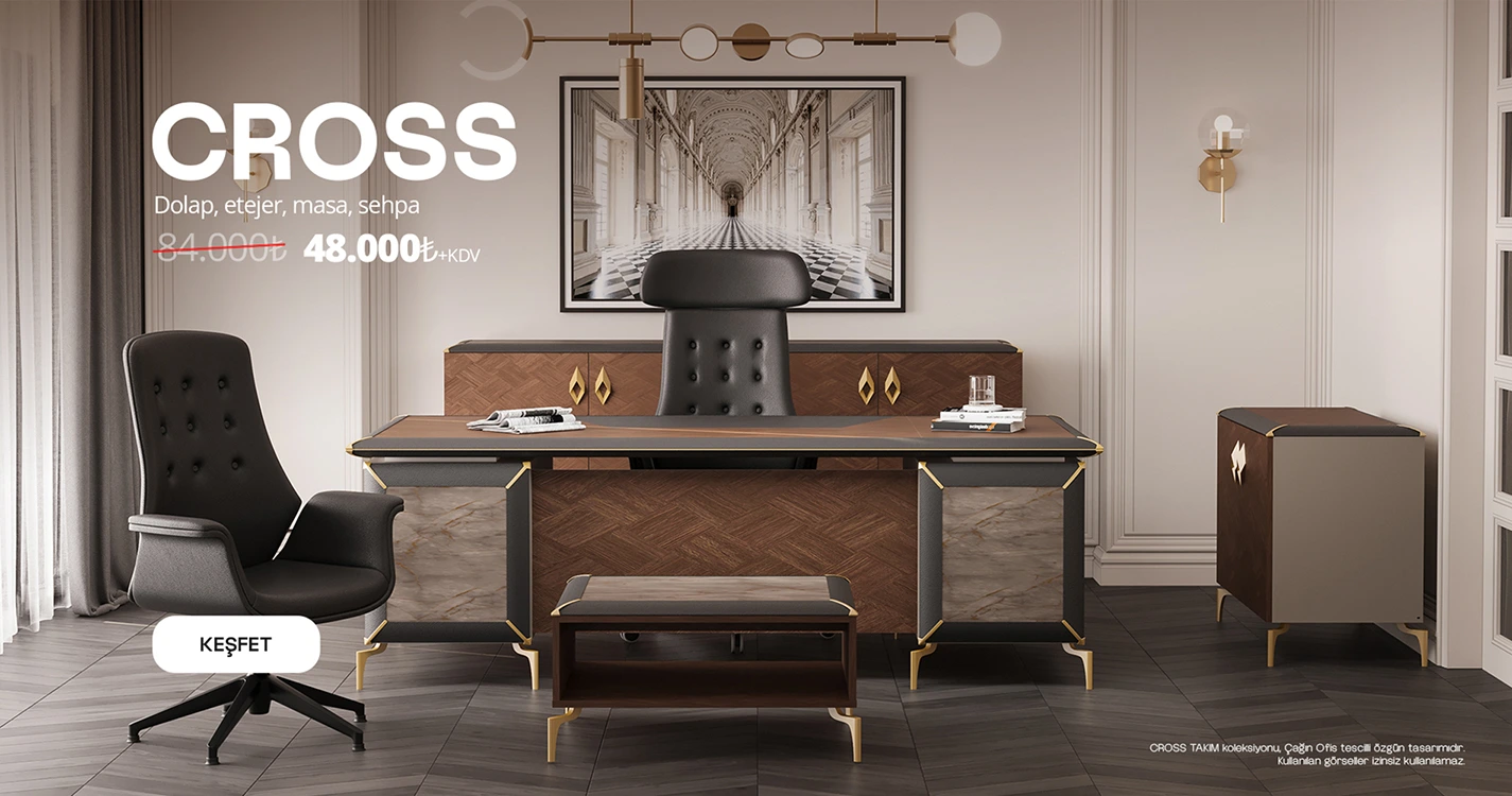 Yönetici odaları için özel olarak hazırlanan koleksiyonlarımızda güç, şıklık ve rahatlık bir aradadır. Toplantı masaları, iletişimi destekleyen tasarım detaylarıyla her görüşmeyi daha etkili hale getirir. Kurumsal prestiji yansıtan atmosferler yaratmak için detayları özenle tasarlıyoruz.